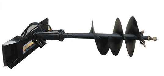 Сверло затяжелителя прикрепляется в затяжелитель через систему быстр-присоединения и типично приведено в действие гидравлической системой затяжелителя. Вращение и глубина проникновения управления оператора сверла используя управления затяжелителя.